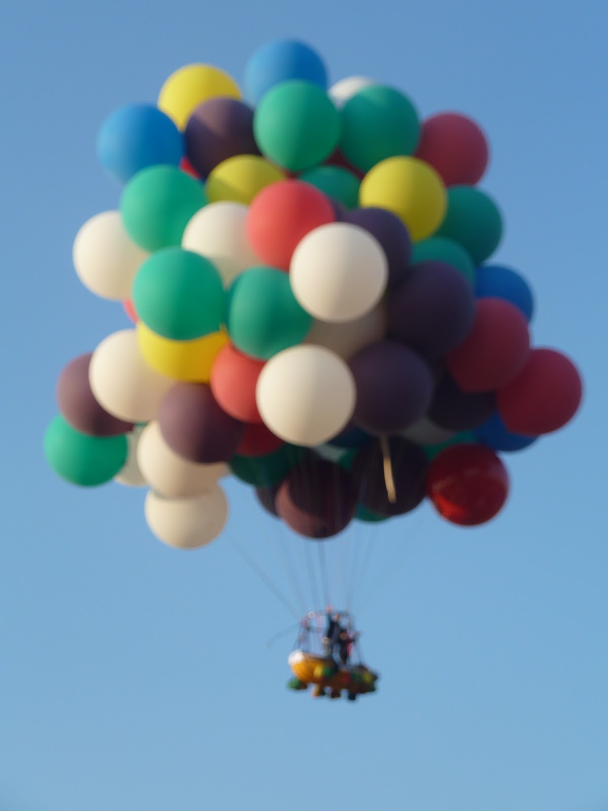 While in Leon we were able to see our fellow North Carolinian Jonathan Trappe do two cluster balloon stunts (think flying using a big bunch of helium balloons)….one a trial in a boat he plans to use when he tries to cross the Atlantic, the other a house reminiscent of the one in the movie Up. I hate that I was not able to help with the helium fills….and that I was so busy during his launches I only got some quick glances of him in action. But it was fun to be there, cheer him on by name, and see it even briefly. I love how Jonathan adds such imagination and adventure to ballooning and I enjoy being a fan.