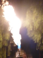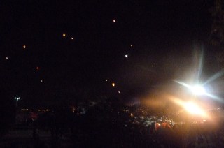 A German guy had the whole glow choreographed to music. I never saw it as it was supposed to be…..both nights I was there it was windy and the balloons were not able to stay up. He had it all staged with some burners on the ground, some burners on the truck, and then some balloons set to inflate like a typical glow. The glow was all set to music. There were lights on the stage that were to give you direction as to what to do (red-do nothing; green-burn; white-twinkle.) We never could see the lights from where we were and/or got distracted by the other lights flashing around the stage. We were not alone. There was just a lot of burning going on during the night we glowed….which was still pretty cool, even though the balloons glowing would have been even more magnificent. At the end of the glow they set off fireworks and released lanterns to float all over the place. On Friday there were a few, on Saturday night there seemed to be thousands of them. It was like being in a fairy land.