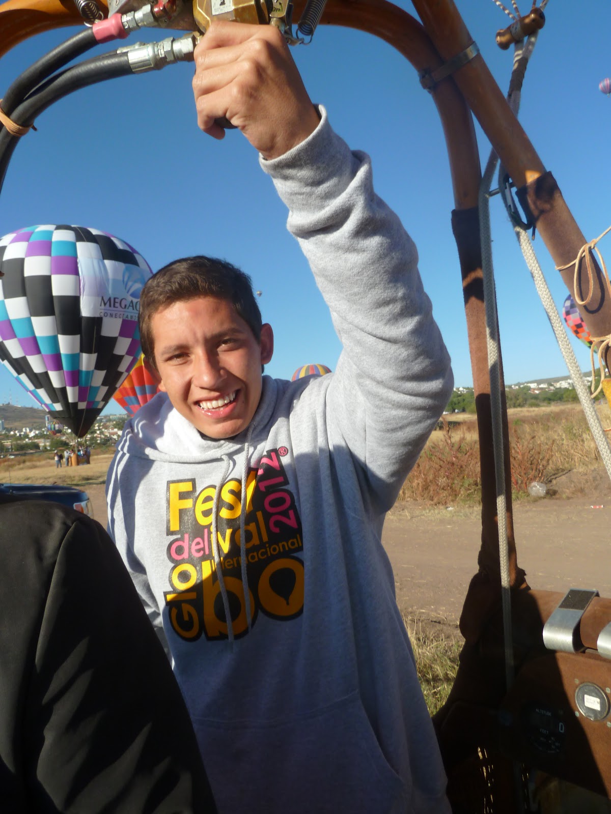 My favorite part of the festival? Hanging out with my ballooning friends, meeting new ballooning friends, and spending time with the wonderful guys in our crew. Let me tell you a bit about each of them. First there is Alejandro, who is studying International Business and hopes to work in the leather industry when he graduates. (He’s got that James Dean look, don’t you think?) He was our driver for the week and tolerated us all giving him directions (usually at one time), as well as having to get his truck in and out of some really tight spaces. He was the most serious of the three, and took most of what I said at face value. (Yes, I enjoyed pulling his leg. But I suspect he would not have allowed it for long.) I loved his big heart….he gave up his balloon ride on Monday morning so that his 16-year old cousin Fernanda could reach her dream of riding in a balloon. She loved it and was in her element! (I loved Fernanda. But Alejandro must ride next year!) I suspect it is very good to have Alejandro in your family.