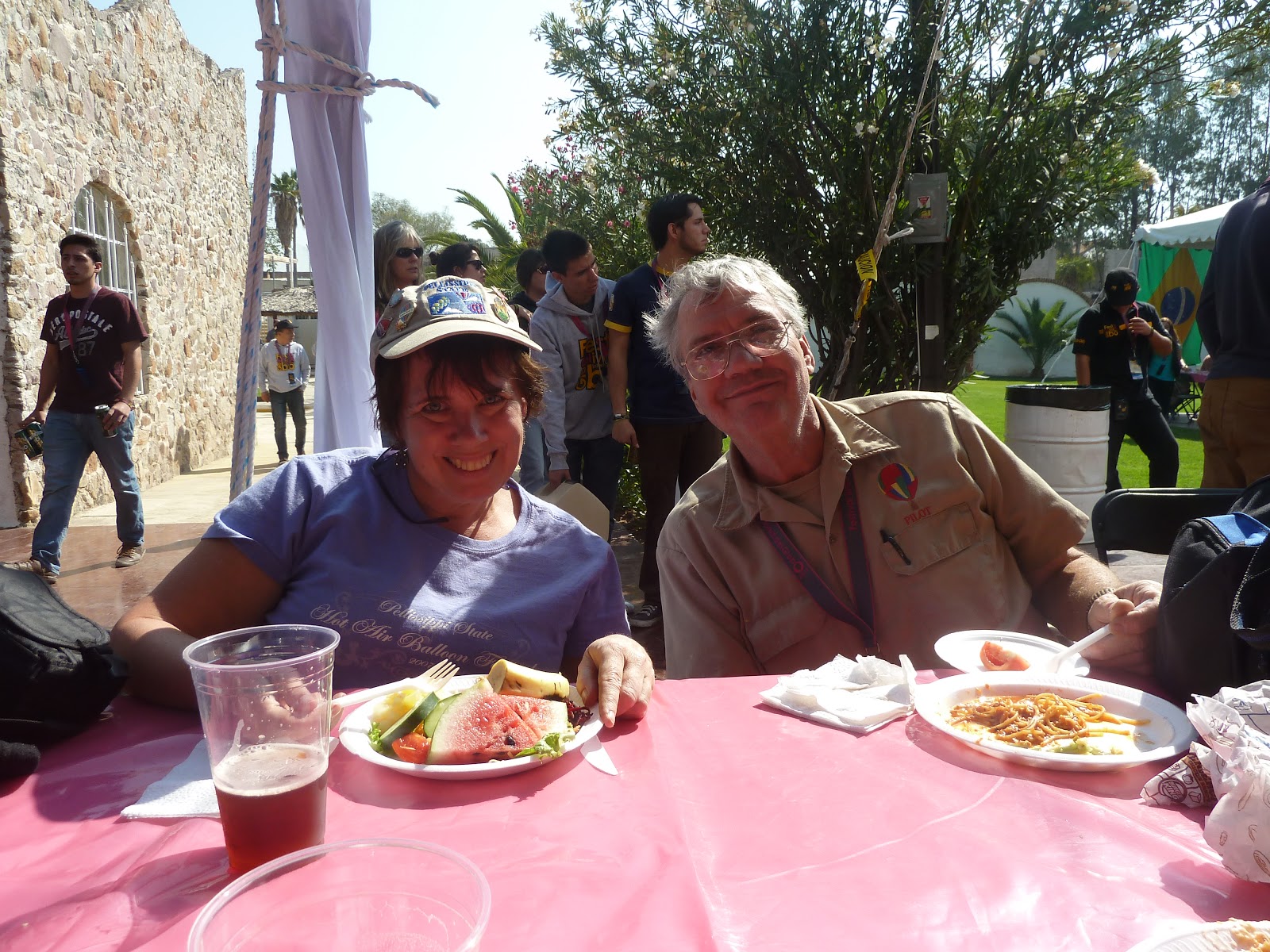 We saw ballooning friends from NC almost as soon as we walked in the door of the hotel. Some of them don’t remember seeing us that night (OK, just one of them, despite the 5 hugs he gave me) but they really did welcome us very warmly and make us feel at home. (The earlier arrivals found the tequila and margaritas very welcoming.)