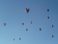 Friday morning was a typical day….we caught the bus at our hotel at 5:30 for the pilot’s briefing at 6. Burger King was a sponsor of the event, and they provided breakfast every day. Always apple pies and fruit and some sort of sandwich. On Friday it was chicken sandwiches. And there was coffee….and it was good. My necessity. (One day both the hotel and the festival ran out of coffee before I got mine, and coincidentally that was the day I kept losing things….like my walkie talkie…..and noone did what they were supposed to do without me having to raise my voice. No coffee leads to the world gone awry.) We shared a launch pad with another balloon. Our “launchmate” was a pilot who had been to every one of the 11 Leon festivals, and had never missed a flight. One year he said only a few balloons took off before they closed the field….he was one of them. His record continued this year. (Note to non-balloonists….it is rare for a festival to have this kind of record where balloons are launched whenever scheduled. Wind or rain, our enemies, usually get in the way at least occasionally.)