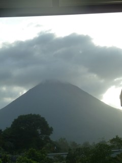 The hotel wasn’t fancy, but it was definitely adequate. I have stayed in much worse places. (The worst being for business….I’ll tell you that story sometime if you want to laugh.) We have a great view of the Arenal volcano stepping right outside our door and looking backwards. It was beautiful. The people were nice. The beds were comfortable. There were no complaints from us!