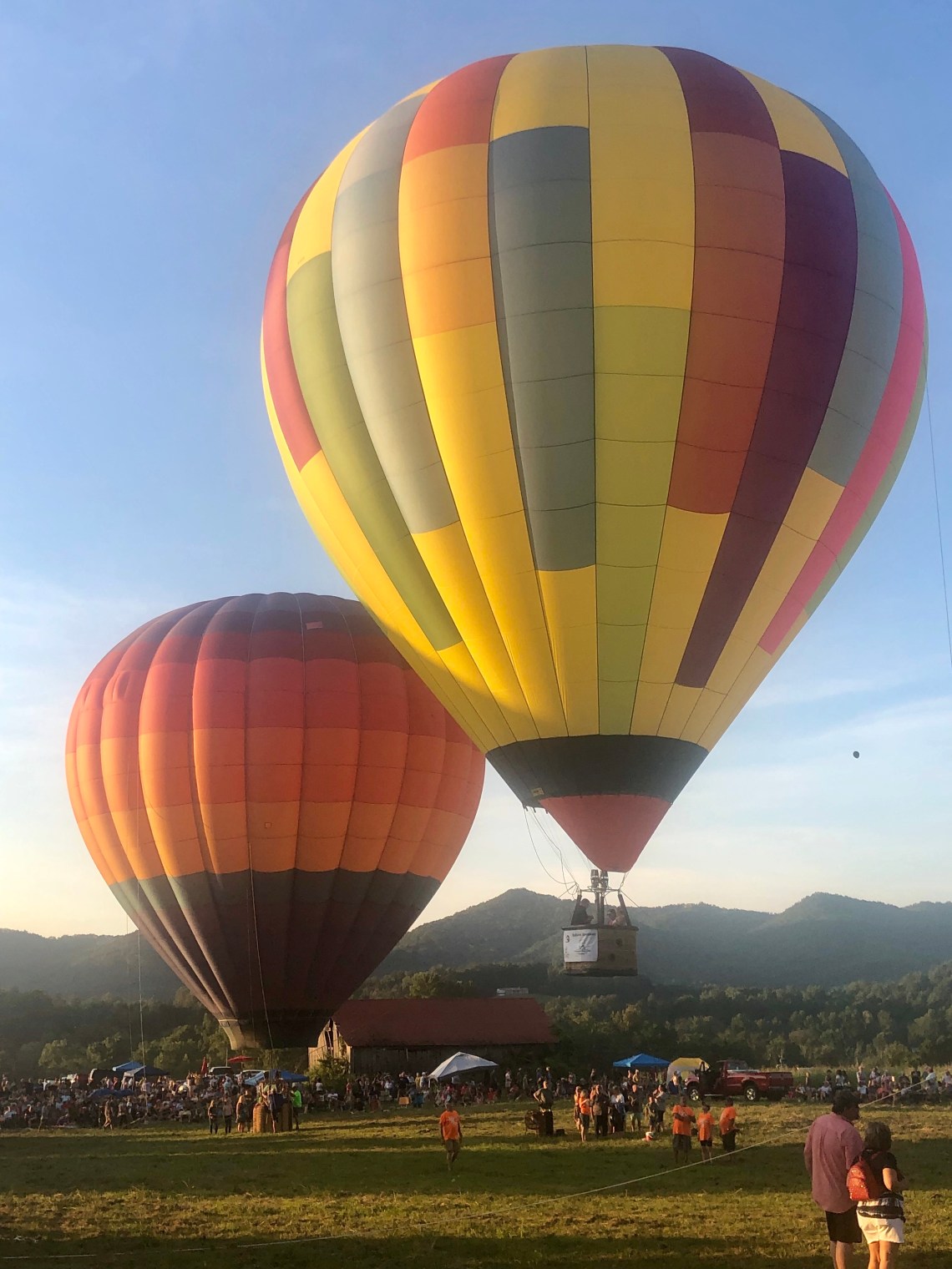 This weekend I traveled to Townsend, TN to crew for my friends Kat and Dale Pattyn’s hot air balloon Hyggelig . Townsend is in the midst of a gorgeous area of Tennessee, and the company could not be beat. Ballooning is a sport that has given me some really great friends…the kind that become family. Here are a few pictures….and if you want to see the local TV news story that features our pilot Dale, check out this link. https://www.wvlt.tv/video?vid=552015842