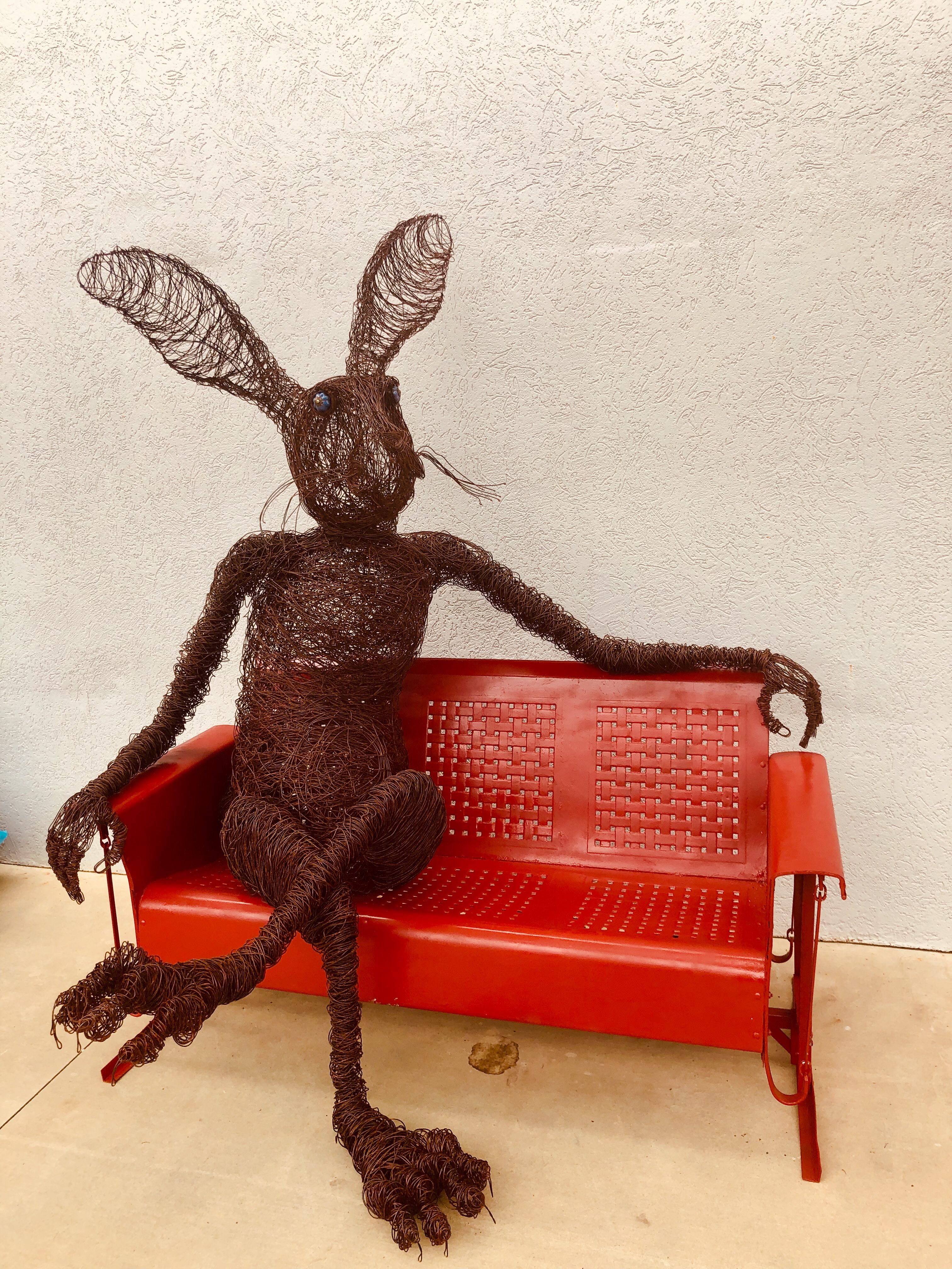 So I wasn’t great at picture taking and realized I got very little of the art in pictures. I mostly just got a few pictures at our city’s sculpture garden (where they are displayed, some for sale and those that resonate are bought to beautify our city), the trolley that allowed me to get from one end of downtown to the other with two feet that had gotten cortisone shots earlier in the day. Anyway…,that rabbit is my new love and may get a permanent home in our city, I hear.