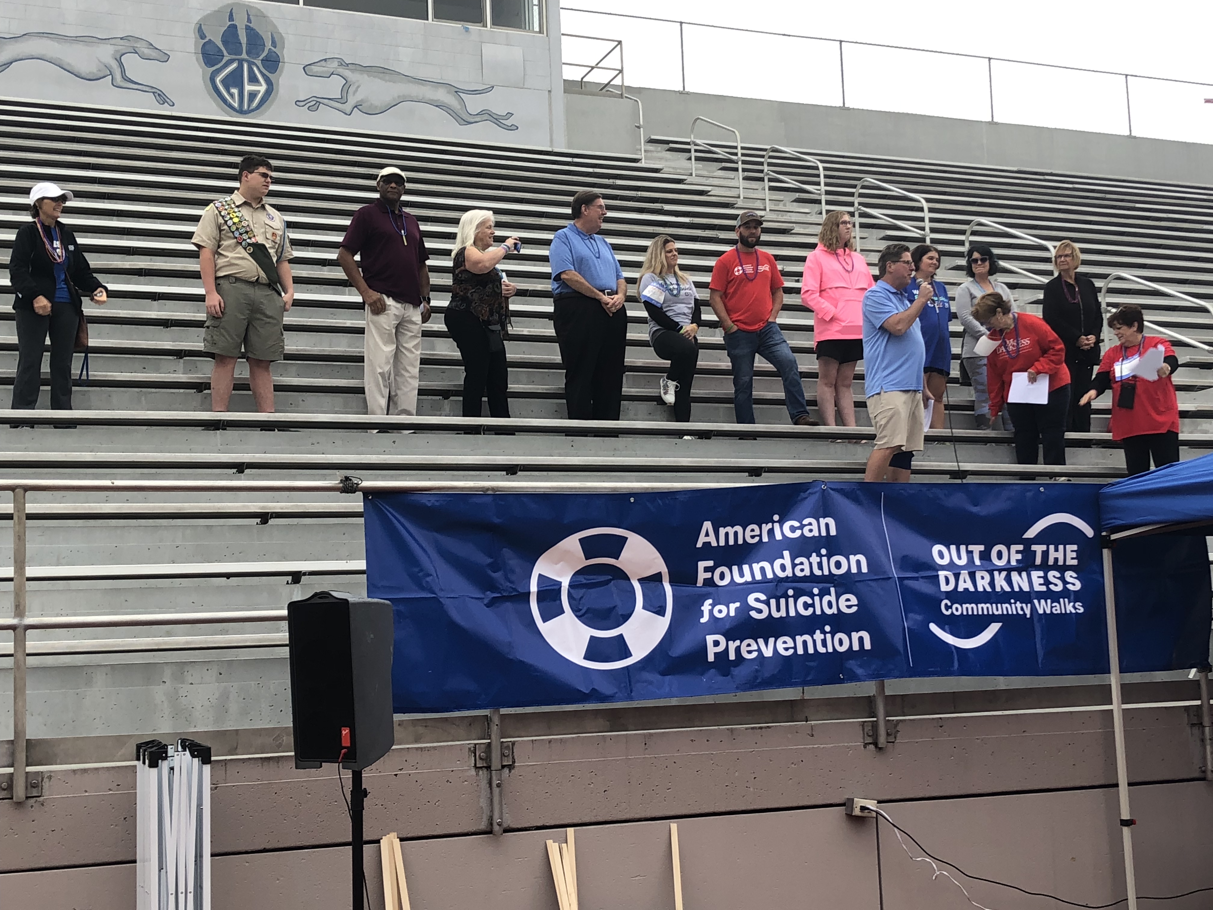 Saturday morning I took part in Out of the Darkness, a walk to raise awareness for suicide prevention. I’ve written before of losing my great nephew to suicide, as well as my cousin and several friends, so prevention is something important to me. While the weather the day before had been in the high 90s, Saturday morning brought grey skies and cool temperatures. I’d been calling the walk “the suicide walk” and truly driving over I felt a bit weary. My niece Sara, the mother of my great nephew, reminded me that it was not to be a depressing thing but a time of hope. Yeah, I knew that.
