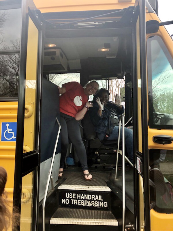 My sister agreed to have meals dropped off to her office and she delivers them to the kids in the complex. The bus couldn’t get in the driveway, so we went and met them at the road. Lunch for today was provided, as well as breakfast for tomorrow, and some paper and pencils for those that need it. My sister and my niece filled up golf carts and had everything organized and out to the kids in short order. (And that cutie on the bus in the red shirt is Mrs. Laura Cass, science teacher and wife to my nephew Brennan.)