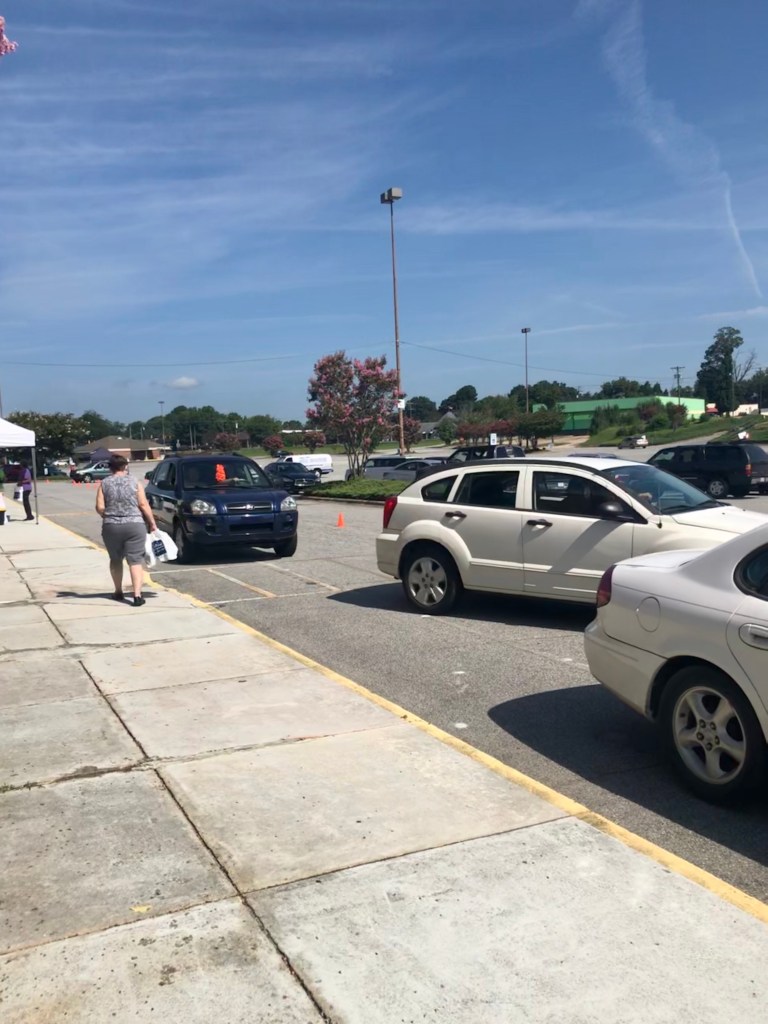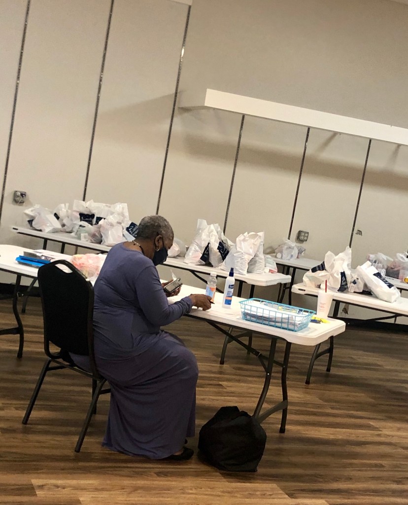 The usual over-the-counter giveaways are set up like a store, where people can pick up a variety of medication and other supplies. Now in this COVID world, they’re doing it drive-through. Most people go online and pick what they need, and the group does its best to fulfill those orders.