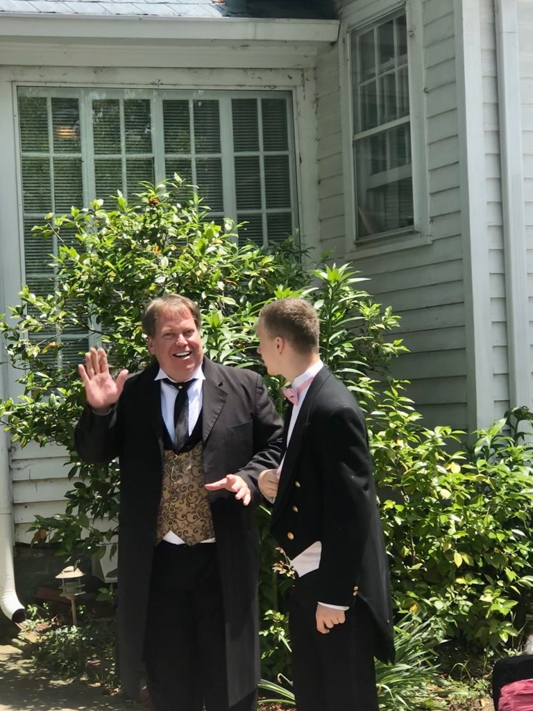 But it was a perfect day to sit out on the lawn and have handsome young footmen bring us all kinds of wonderful delicacies. The breeze was blowing and the sun was out. OK, Our host Keith had to hold the tent over the symphony members down at one point, but as he told the rest of us “Just carry on.”