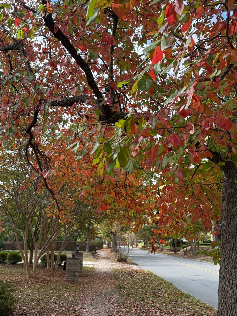The leaves fall from the trees because it’s time to prepare for new growth. I guess I’m a tree. What will come next? While the future is not in my control, totally, I can choose living full. As often as possible. In spite of everything.